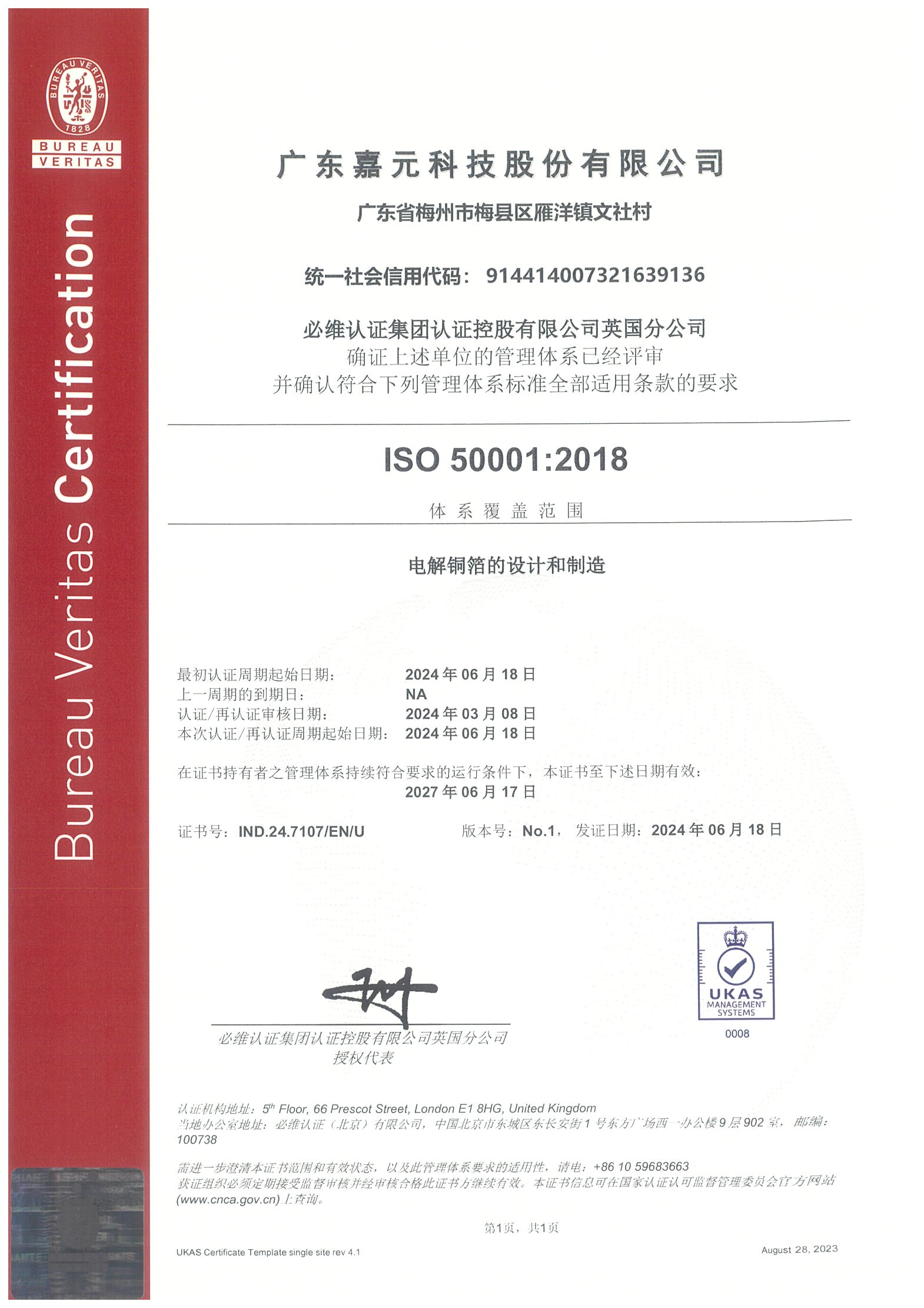 ISO 50001:2018能源管理體系證書