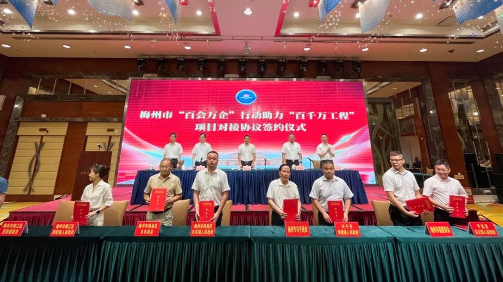 會議期間,8家商協(xié)會圍繞“助推培育‘四上’企業(yè)、壯大縣(鎮(zhèn))域經(jīng)濟(jì)(招商引資)、消費幫扶、公益慈善、綠美梅州”五大方面與8個鎮(zhèn)(街)政府舉行梅州市“百會萬企”行動助力“百千萬工程”項目對接協(xié)議現(xiàn)場簽約儀式,預(yù)計三年簽約投入金額共計5.3593億元;與會人員觀看梅州招商推介宣傳片;實地參觀考察梅縣區(qū)水車鎮(zhèn)白沙村美麗鄉(xiāng)村建設(shè)項目和梅州智慧柚柚創(chuàng)意園,現(xiàn)場感受梅州實施“百千萬工程”取得的扎實成效。